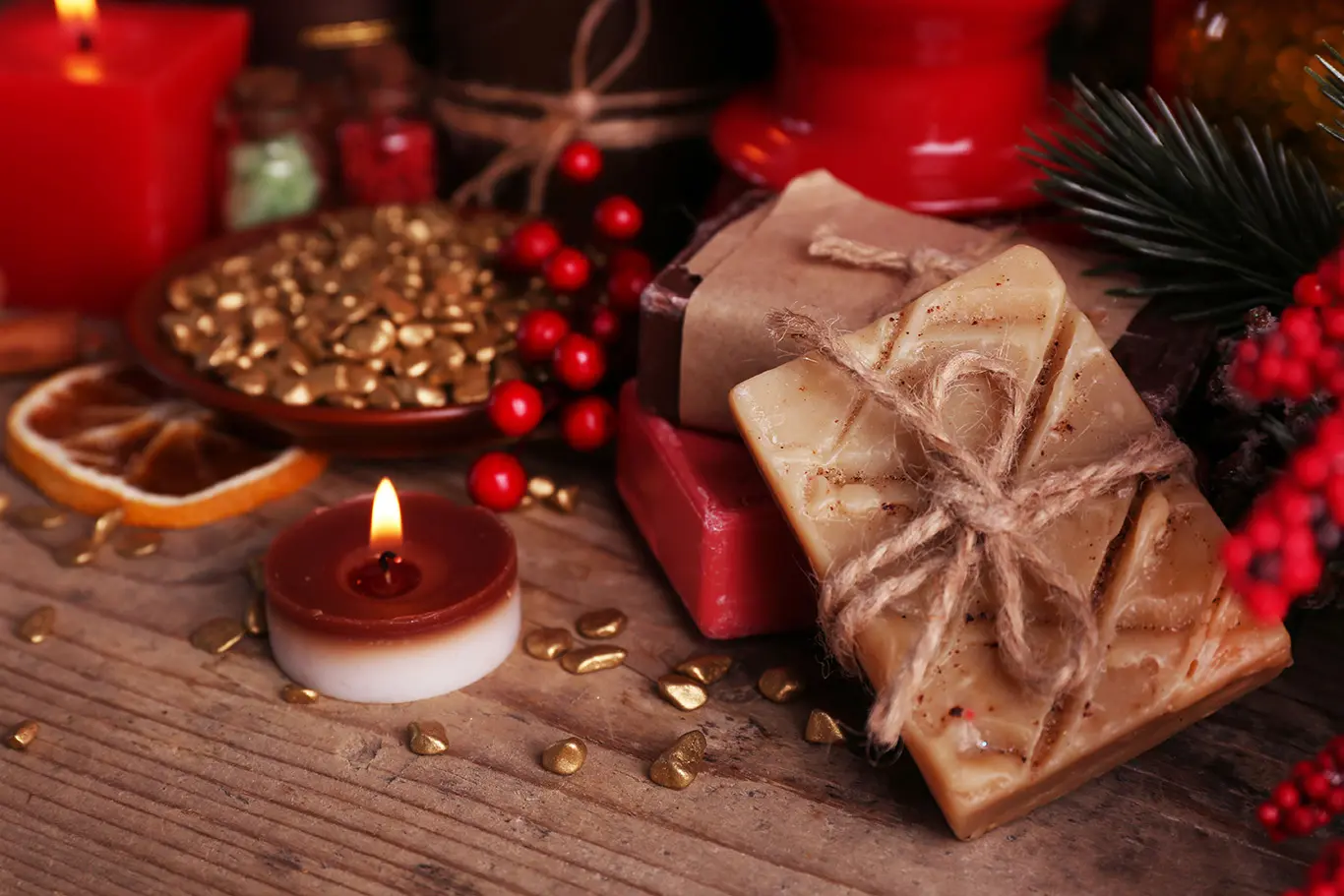 To zdjęcie produktowe zostało wykonane w celu zaprezentowania mydła. Cała fotografia przedstawia świąteczną atmosferę. Przyglądając się temu zdjęciu, można poczuć niepowtarzalny klimat świąt oraz towarzyszące im charakterystyczne zapachy.