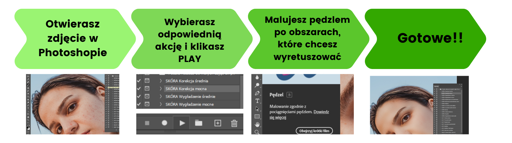 Mniej pracy = więcej wolnego czasu! Wystarczy, że wybierzesz akcję, naciśniesz play i możesz zacząć szybki retusz! Zobacz sam/a!